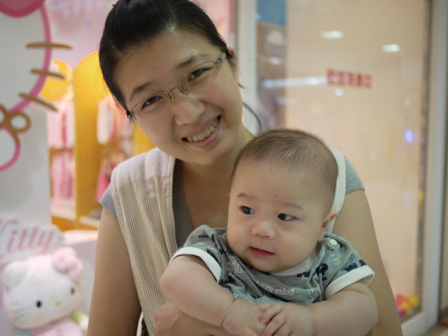 跟小紅豆弟弟拍照 (哇~他的頭髮真多.....)